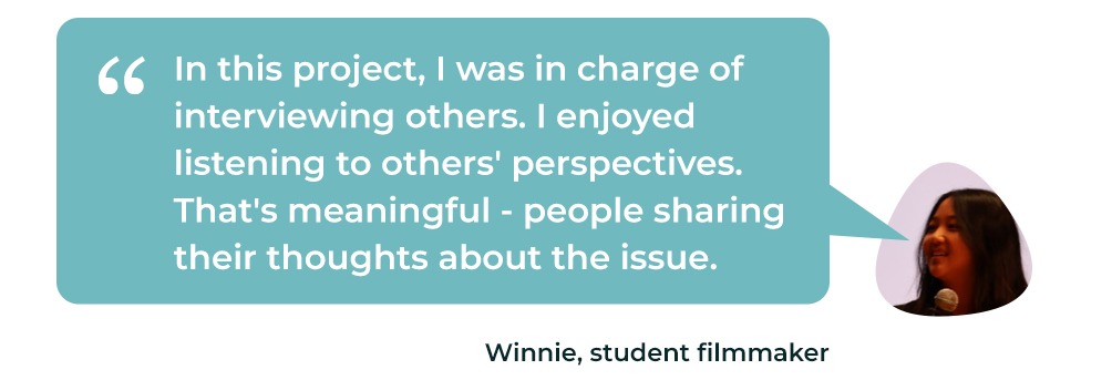 Winnie, one of the student filmmakers, described how interviewing people in the community changed the way she saw the issue:
